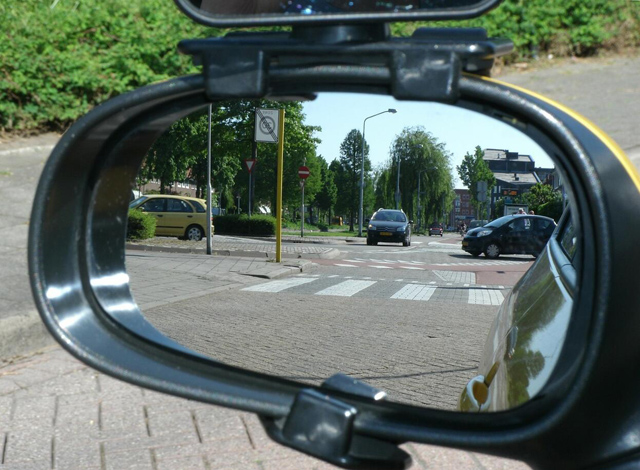 A bal oldali külső tükröt úgy kell beállítani, hogy az autóból csak egy keskeny csík legyen látható, a többi rész pedig a mellette lévő forgalmat mutassa. Ugyanez érvényes a jobb oldali tükörre is. A megfelelő beállítás csökkenti annak veszélyét, hogy nem veszel észre egy, éppen a holttérbe került autót.